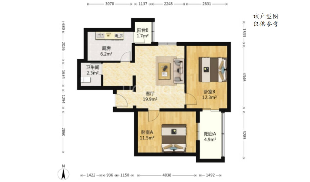 西罗园 / 住宅 / 2室1厅 / 63.29㎡