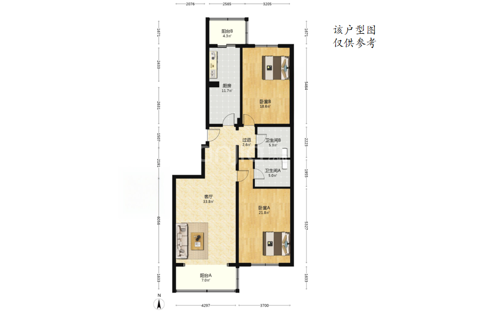 北七家 / 住宅 / 2室1厅 / 102.17㎡